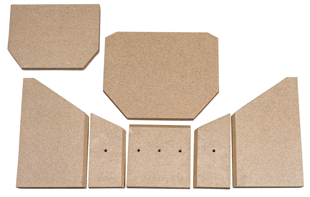 Komplet sæt ildfaste plader i original kvalitet fra Jydepejsen. Indeholder både skamol-/vermiculiteplader samt røgvenderplade, der sikrer korrekt forbrænding og beskytter ovnens indre.